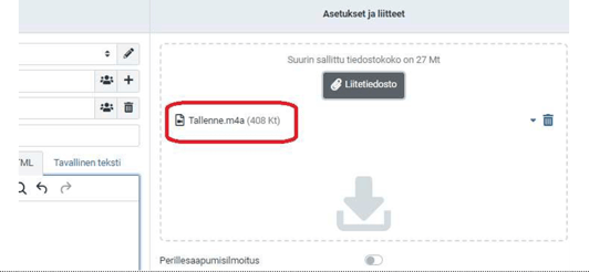 Kun tiedosto on liitetty onnistuneesti, se näkyy viestisi yläosassa tai liitelistassa viestinkirjoitusnäkymässä.